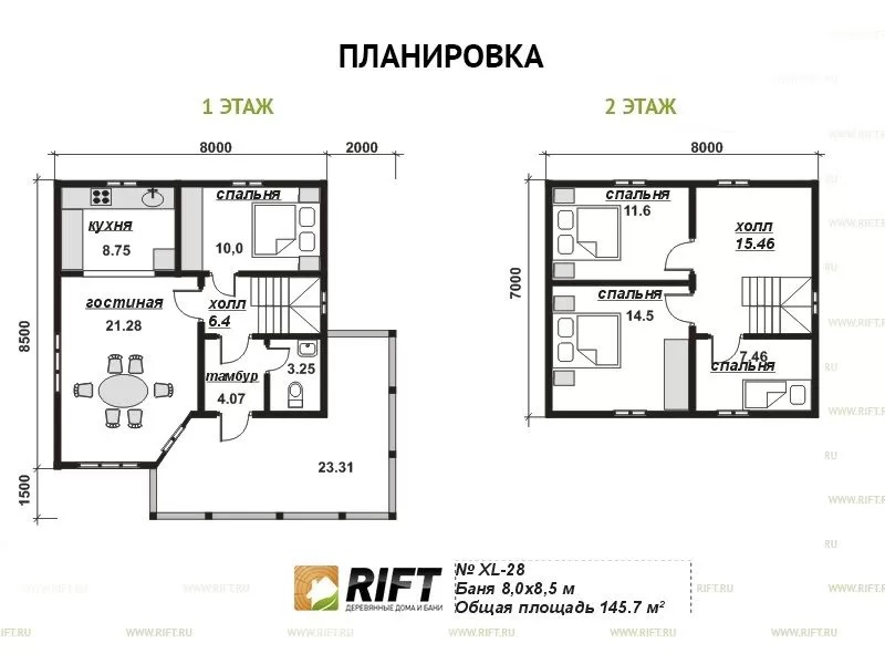 Дом XL28 из бруса — это тепло, надежность и природная эстетика. 145 м2 позволяют создать комфортные условия для всей семьи. Натуральный брус хорошо удерживает тепло и придает дому уют. Он безопасен для здоровья, создает благоприятный микроклимат и подходит для круглогодичного проживания.