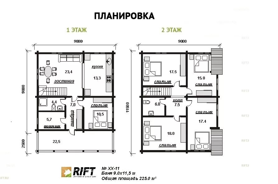 | Без отделки (Под усадку) 7 038 000 руб | С отделкой 9 522 000 руб | |