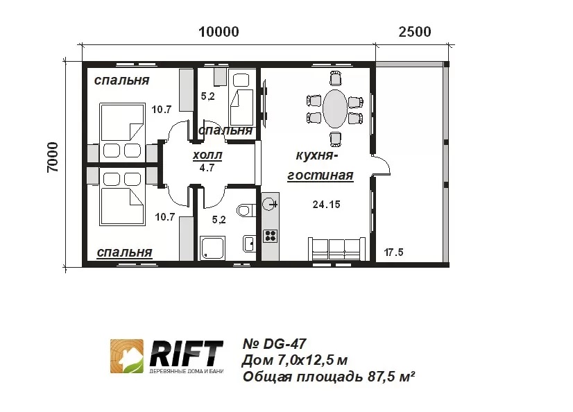 Наша компания Dom Rift создала просторный дом. Здесь вы найдете уют и комфорт благодаря хорошо продуманной планировке, где каждое помещение занимает свое место. Каркасный дом DG47 представляет собой современный и функциональный жилой комплекс, разработанный нашими опытными архитекторами с учетом передовых технологий и требований строительных стандартов. Этот проект идеально подойдет для тех, кто ценит комфорт и стиль в своем жилище. Характеристики: 1. Площадь: 88 кв. м. 2. Этажность: 1 этаж. 3. Размеры: 12×8. Мы никогда не стараемся сэкономить на материалах при строительстве и всегда используем нужное количество, указанное в проекте. Это гарантирует надежность и безопасность наших построек. Используем современные и высококачественные материалы, гарантирующие надежность и долговечность постройки. Мы используем: [Материал] Применяем Каркас, обеспечивая высокую энергоэффективность и экологическую безопасность. Этот одноэтажный дом идеально подходит для постоянного проживания четырех человек. Его необычная форма и архитектурный стиль позволят ему выделяться среди других домов в округе. Цена и условия: Цена: 2640000 (возможен индивидуальный расчет). Цена в кредит: Мы предоставляем гибкую систему кредитования, начиная всего с 42 240. Срок реализации: Проект будет реализован в течение 30 дней дней. Приобретая проект Дом Рифт – Каркасный дом DG47, вы получаете не только стильное и современное жилье, но также поддержку на всех этапах строительства и возможность заказа строительства вашего дома в нашей компании с бесплатным предоставлением проекта. В каталоге проект размещен под артикулом dg47.