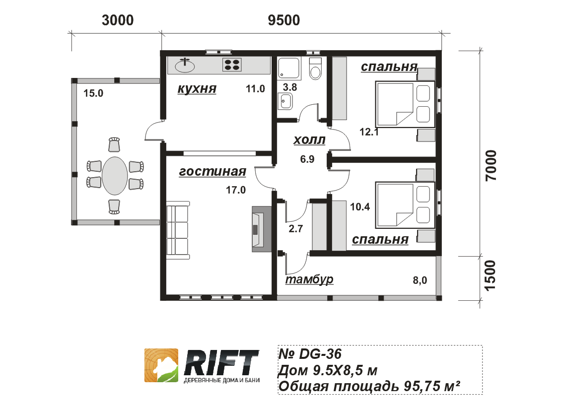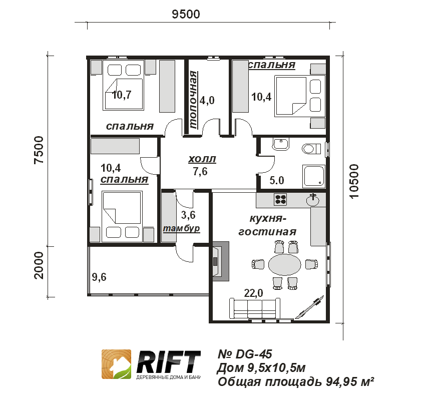 Пол | Черновой пол выполняется из доски 25 мм, чистовой пол выполняется из OSB-3 толщиной 18 мм | |