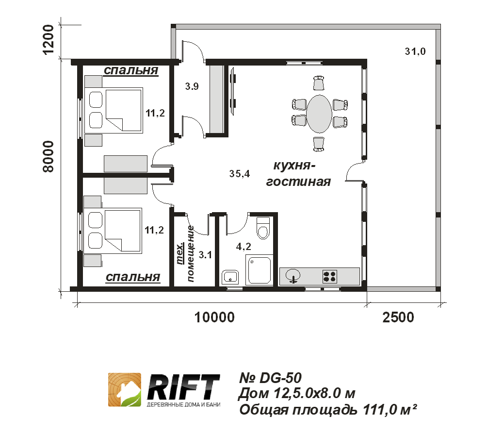 Высота потолка | 2500 мм | |