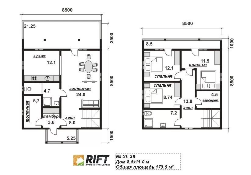 Пол | Черновой пол выполняется из доски 25 мм, чистовой пол выполняется из OSB-3 толщиной 18 мм | |