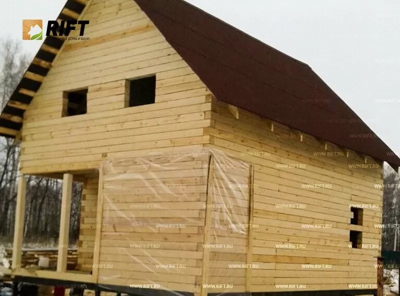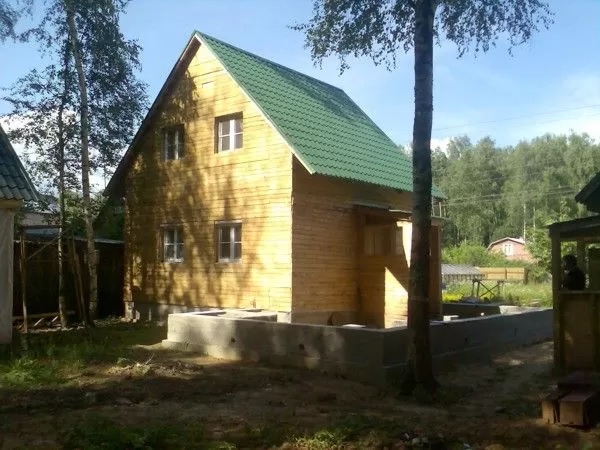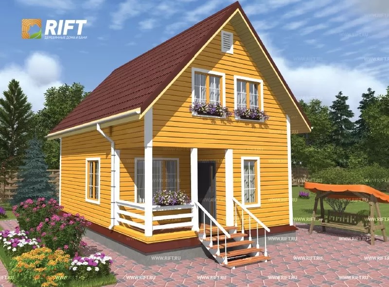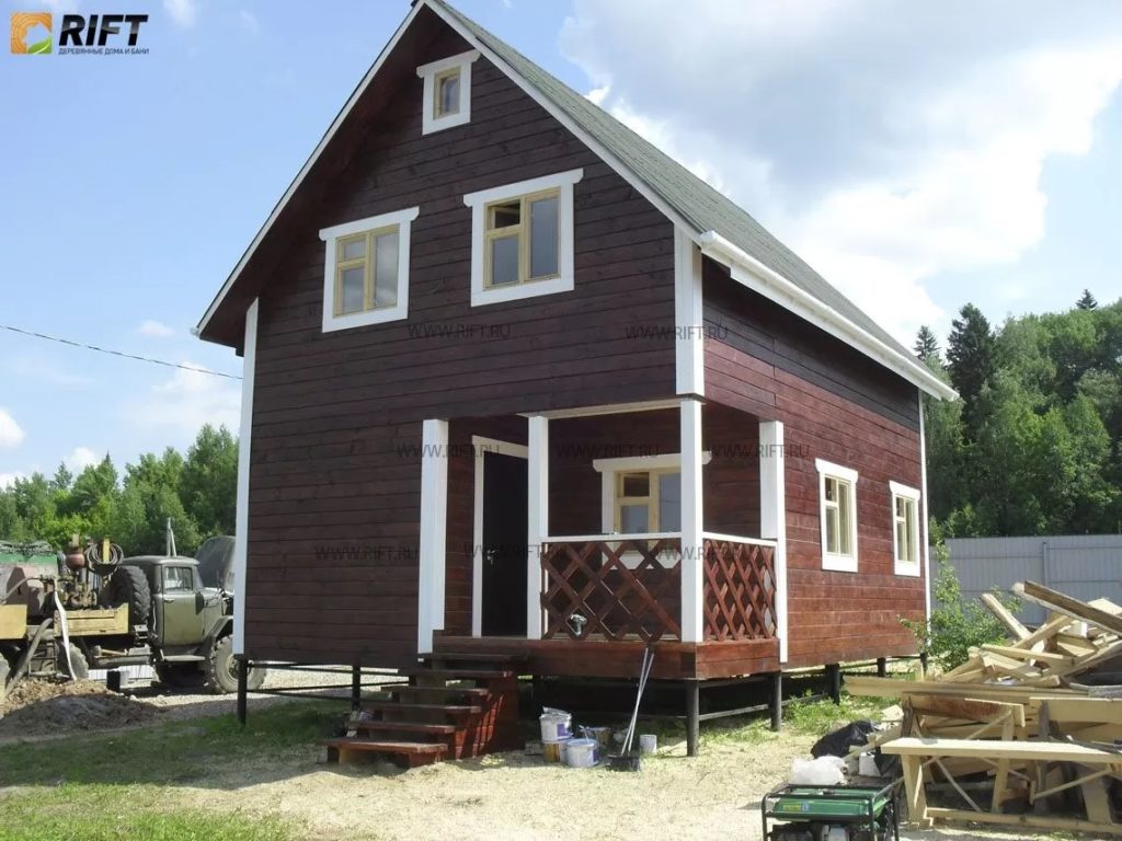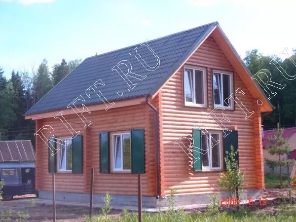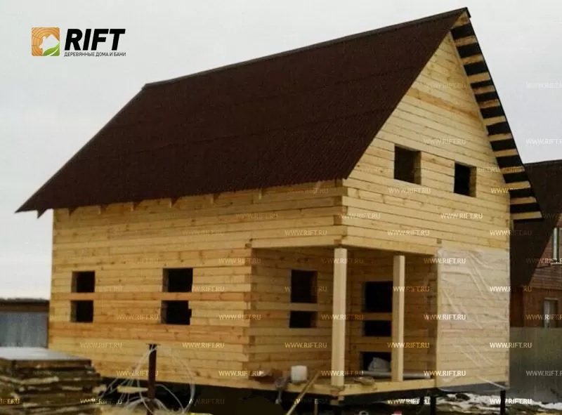 Одноэтажный дом из бруса в 6 на 8 м в Пушкино занимает площадь до 100 квадратных метров. Согласно прайсу, он обойдется в 1-1,5 миллиона рублей. Есть варианты с балконом, гаражом, мансардой, верандой, утеплением, эркером, котельной.