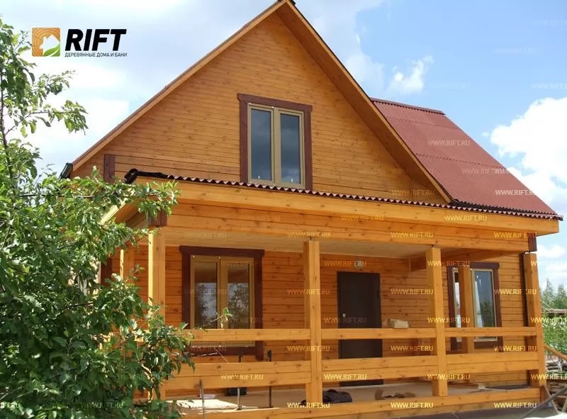 Внутри дома можно разместить гостиную, кухню, спальню, санузел и дополнительные комнаты по желанию. Особенностью проекта дома из профилированного бруса 8 на 9 метров в Пушкино может быть наличие второго этажа или мансарды, что увеличивает общую площадь жилья и делает его более функциональным.