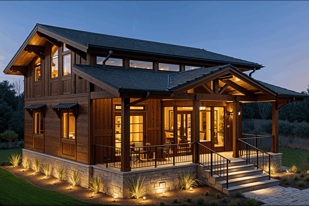 Ещё одно преимущество двух этажей в каркасном доме — это современный стиль. Чистые линии фасадов, большие окна и панорамное остекление делают дом визуально лёгким и открытым, а сочетание разных материалов отделки позволяет придать индивидуальность каждому проекту. При этом сохраняется высокий уровень теплоизоляции и энергоэффективности: качественный утеплитель и продуманная вентиляция создают комфортный микроклимат в любое время года, а окна и системы отопления позволяют экономить на коммунальных услугах.