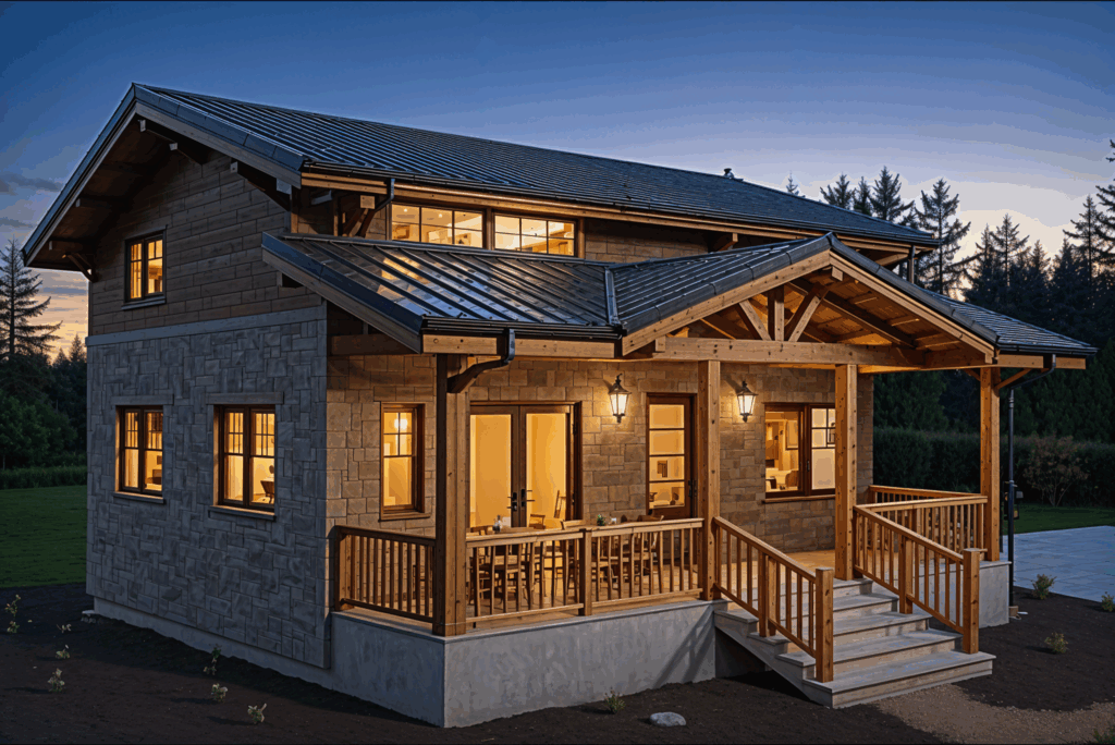 Если говорить о планировке и строительстве «человеческим языком», можно отметить, что в таких домах удобно сочетать открытые пространства с закрытыми комнатами, чтобы и детям было место для игр, и взрослым — для работы и отдыха. Можно создать террасу или балкон на втором этаже, чтобы наслаждаться видом на участок или природу вокруг, не выходя на улицу. При этом дом остаётся безопасным, экологичным и долговечным, ведь мы используем сертифицированную древесину и проверенные натуральные утеплители.